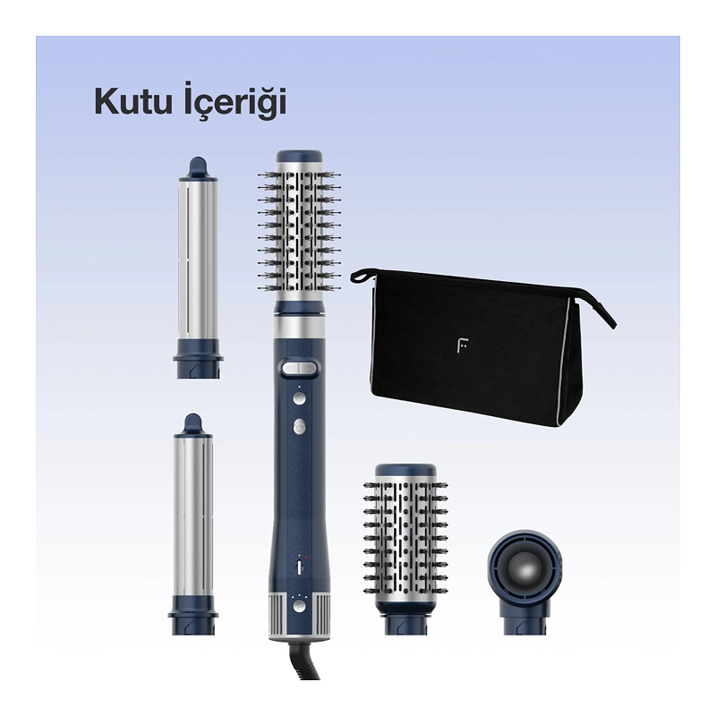 FAKİR AirTouch Saç Şekillendirici Set, otomatik rotasyon ve hava akımıyla şekillendirme teknolojisi sayesinde saçlarınıza zahmetsizce profesyonel dokunuş kazandırır. 1500 W gücü ve BLDC + DC motor yapısı, güçlü ama kontrollü performans sunarken; sağ ve sol yönlü dönebilen başlıklar saçın doğal yönüne uyum sağlayarak şekillendirmeyi kolaylaştırır. İyon teknolojisi, 3 sıcaklık ve 3 hız ayarı, soğuk hava desteği ve akıllı ısı kontrolü ile saçın doğal yapısını koruyarak parlak, hacimli ve kalıcı stiller elde etmenize yardımcı olur.