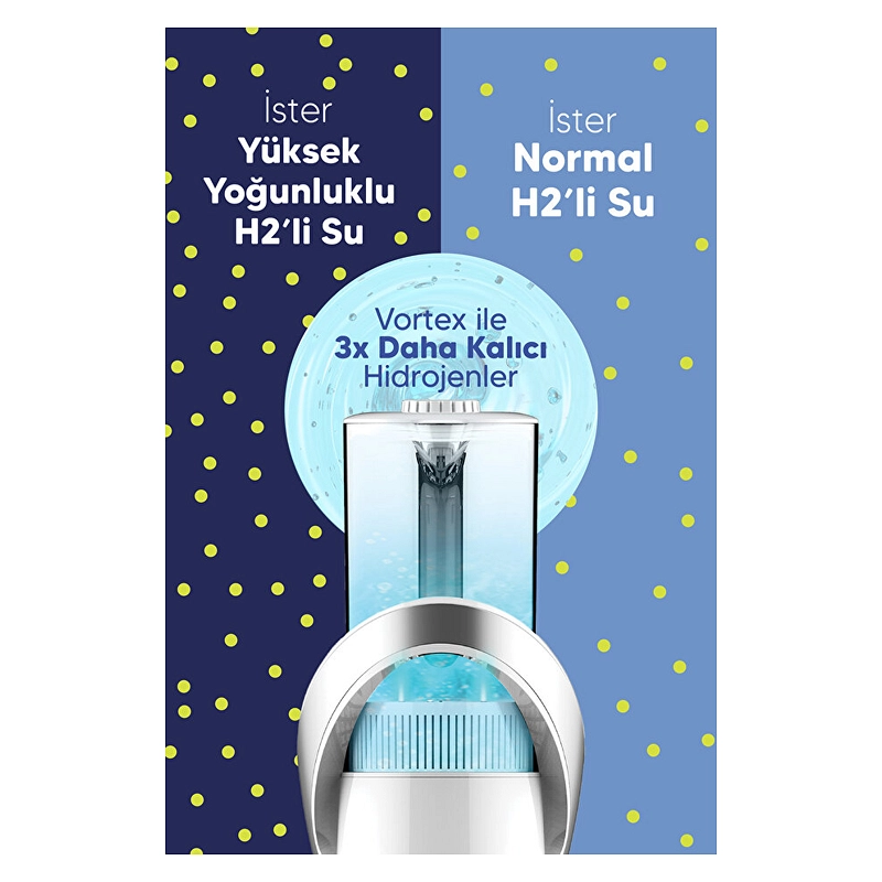 FAKİR AQUA GIO Hidrojenli Su Üretici, elektroliz teknolojisiyle içme suyundaki hidrojen molekülü yoğunluğunu artırarak hidrojen açısından zengin su elde etmenizi sağlar. 1,6 L geniş haznesi, günlük su ihtiyacını pratik şekilde karşılarken; standart ve yüksek olmak üzere ayarlanabilir hidrojen seviyeleri, kullanım tercihinize göre esneklik sunar. Dokunmatik kontrol paneli, tüm ayarları tek dokunuşla kolayca yönetmenize imkân tanırken; kendi kendini temizleme modu, yalnızca 1 dakika içinde hijyenik kullanım sağlar. LED aydınlatma, elektroliz sürecini görsel olarak takip etmenize yardımcı olur ve şık bir deneyim sunar. Günlük kullanıma uygun yapısıyla, daha bilinçli ve düzenli su tüketimini destekler.