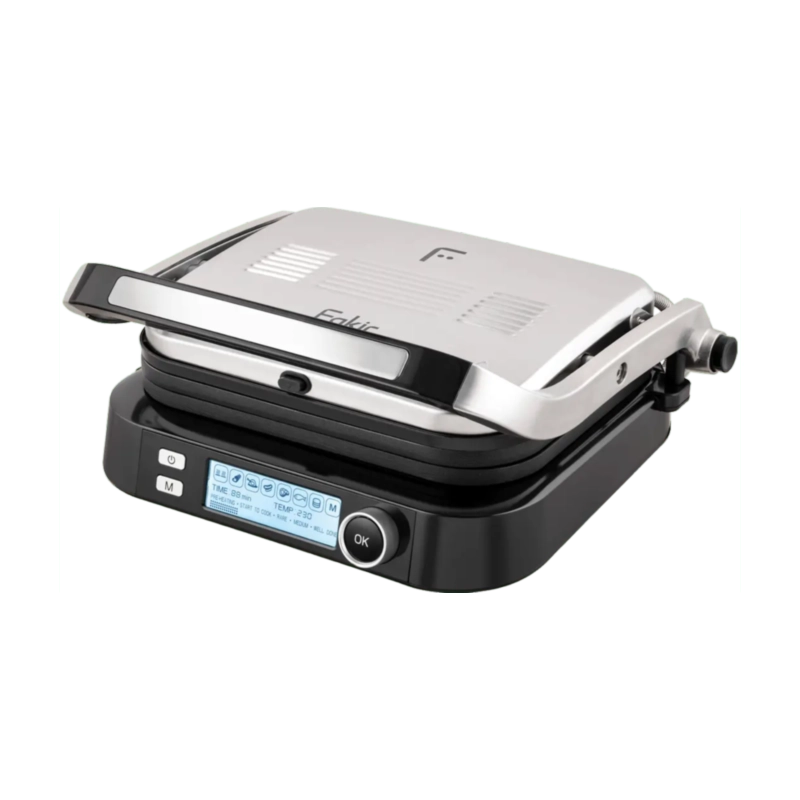 Fakir Grill Expert Smart, “akıllı sensör teknolojisi” ile pişirme sürecini yiyecek türü ve kalınlığına göre otomatik ayarlayan, yüksek performanslı bir tost & ızgara makinesidir. 180° açılabilen plakalarıyla hem ızgara hem tost keyfini geniş yüzeyle sunar. Dijital ekran üzerinden görsel kontrol sağlar; sesli uyarı sistemleri işlemi bildirdiğinde müdahale etmeniz gerekmez. Alüminyum döküm plakaları çıkarılabilir yapıdadır; temizlik sonrası kolay yıkanabilir. Dış gövdesi ısıya dayanıklı materyallerle tasarlanmış olup pişirme sırasında dış yüzey elinizi yakmaz.