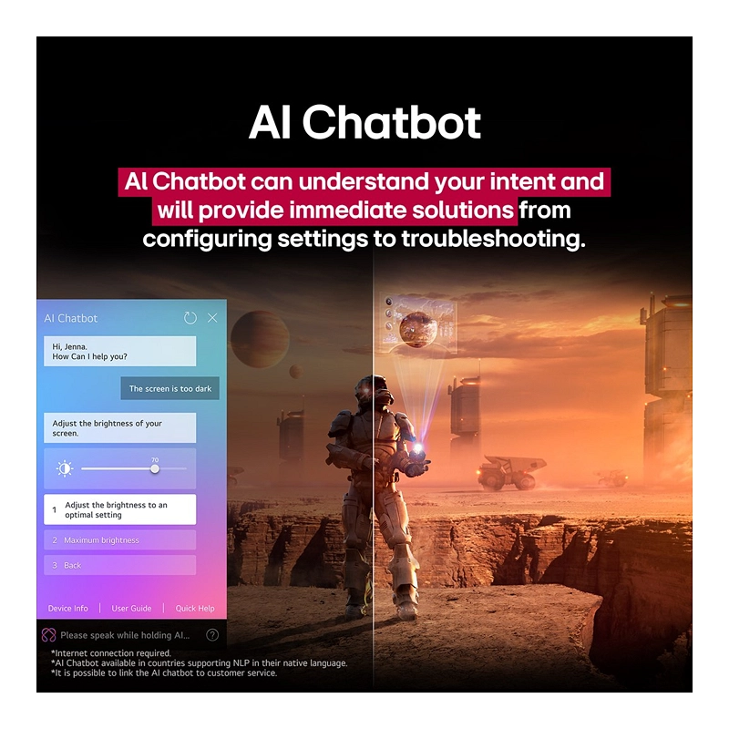 • Yapay Zekâ Özellikleri: AI Chatbot, Voice ID, AI Genre Selection, AI Brightness Control